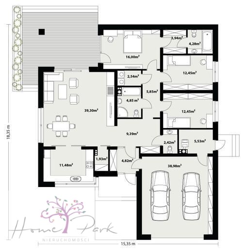 | Powierzchnia pokoi | 39,3/16/12,45/12,45 m2 |