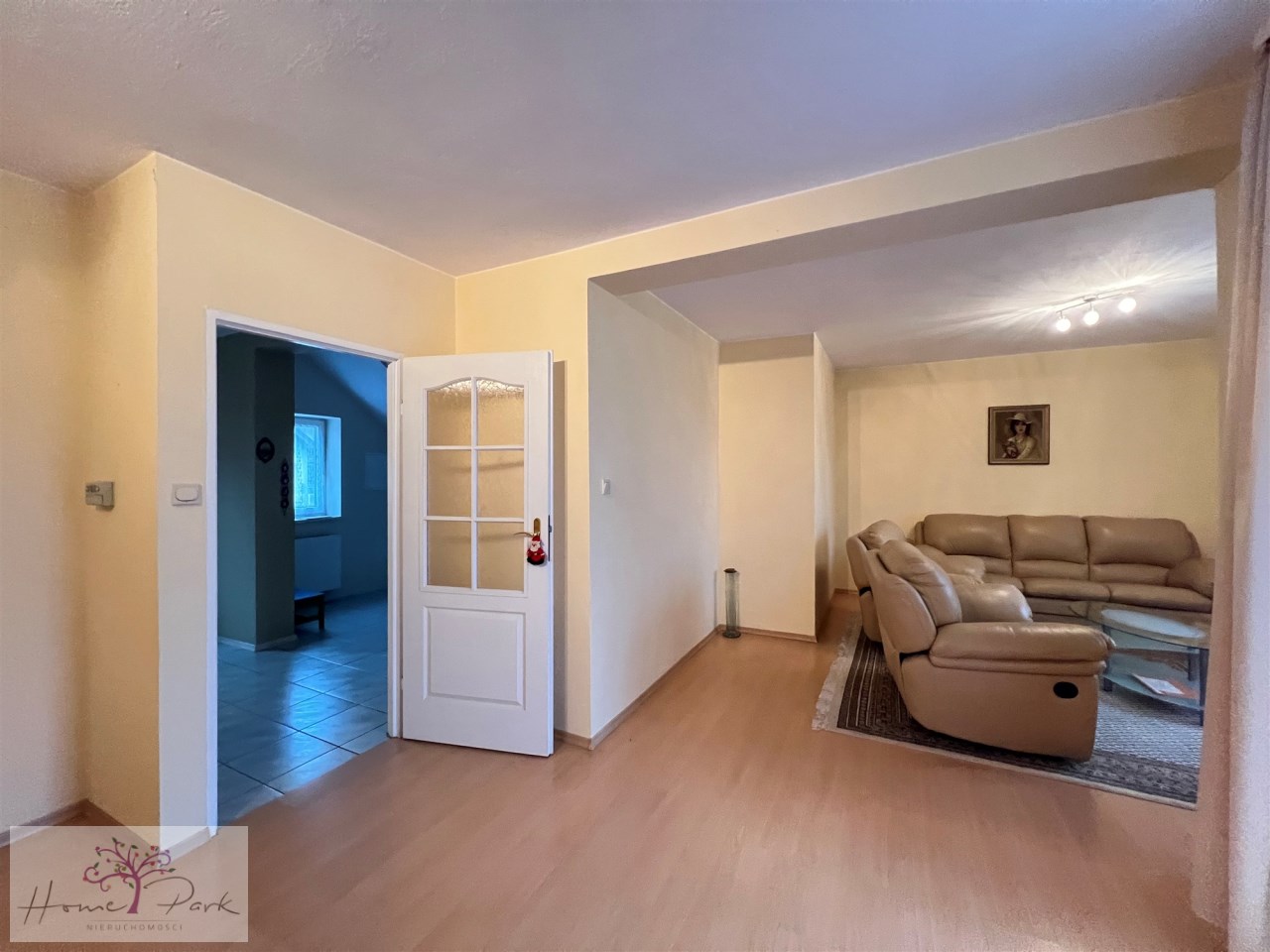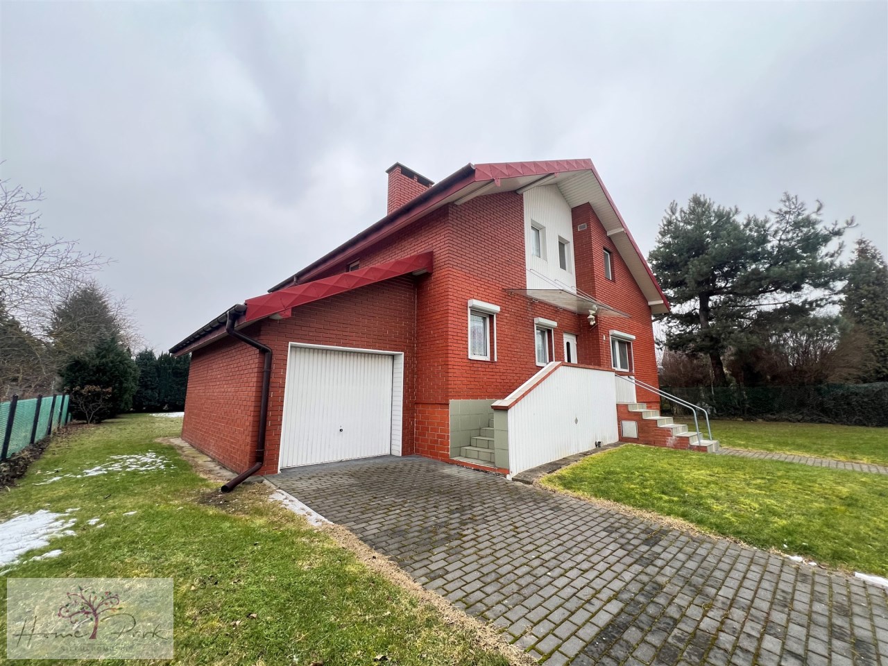 W garażu znajduje się wewnętrzne przejście do części mieszkalnej domu .