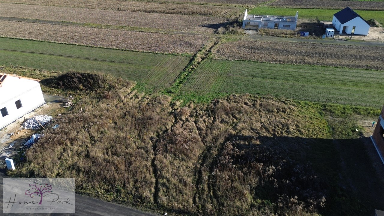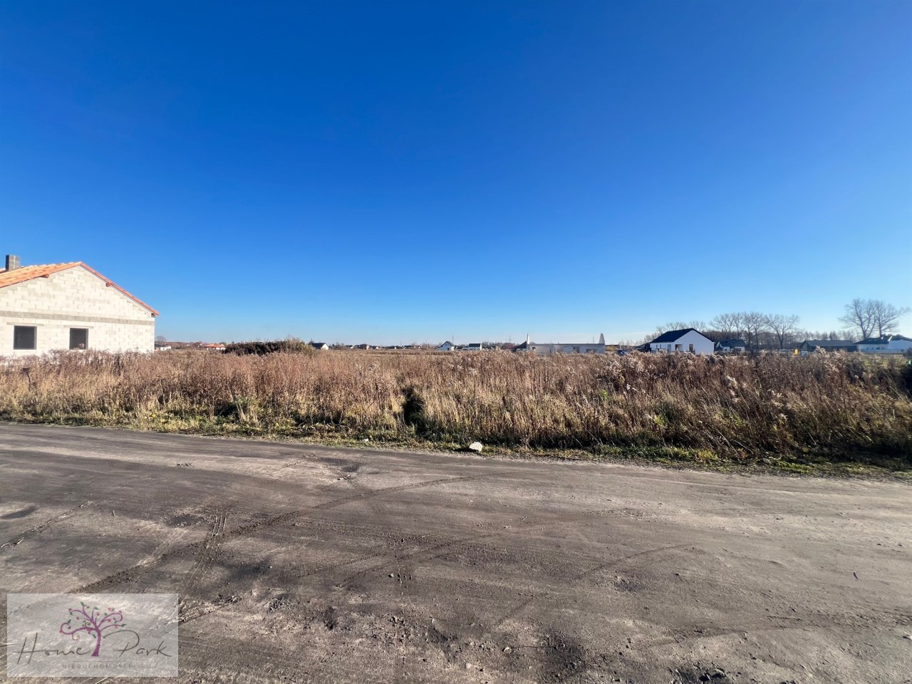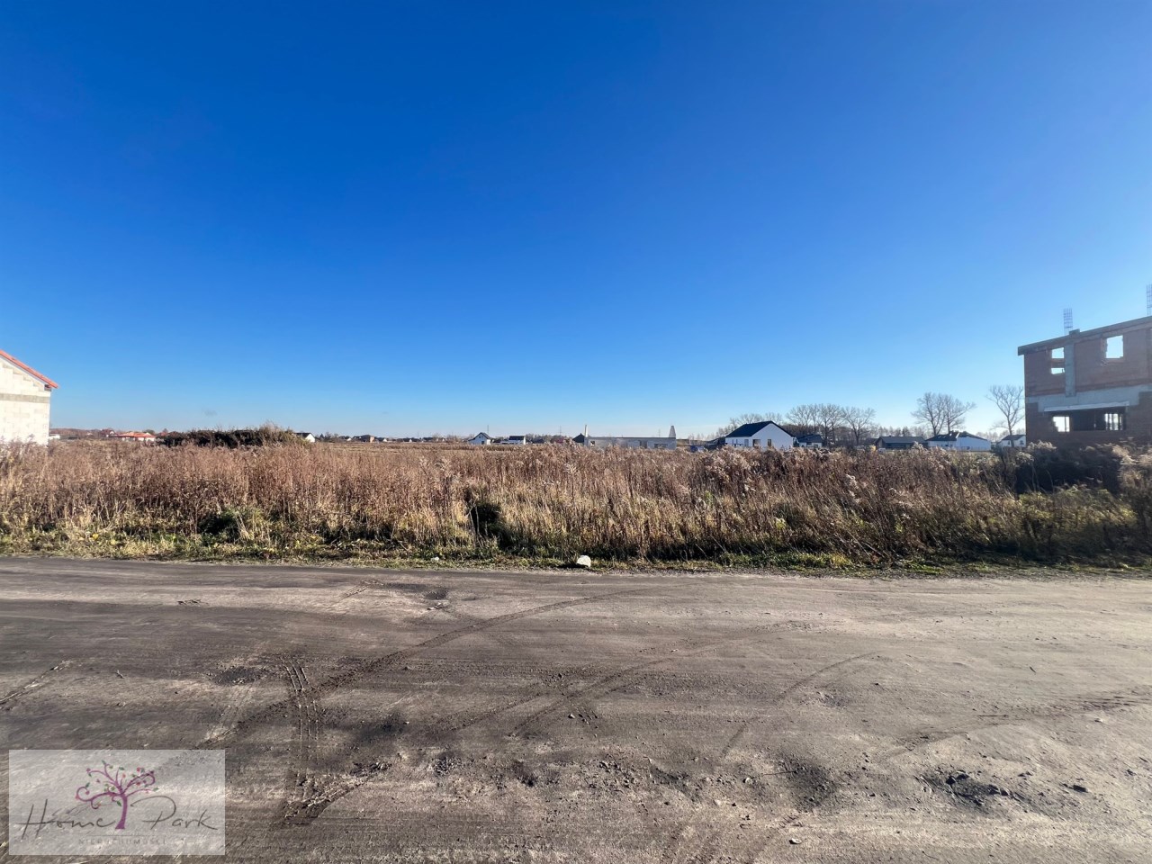 Działka jest pusta, teren płaski przygotowany pod budowę.