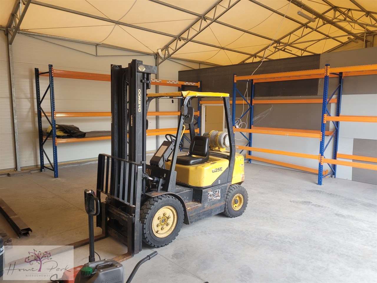 Hala z dachem pneumatycznym z dwiema bramami rozładunkowymi i 3 powierzchniami magazynowymi podzielonymi ściankami działowymi.