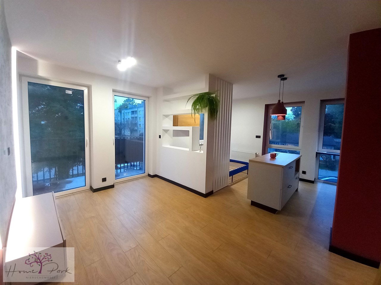 Przestronny, jasny salon z aneksem kuchennym i wydzieloną częścią sypialnianą,