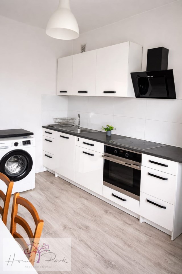 Mieszkanie wyposażone jest w zabudowę kuchenną oraz sprzęt AGD, w tym m.in.: