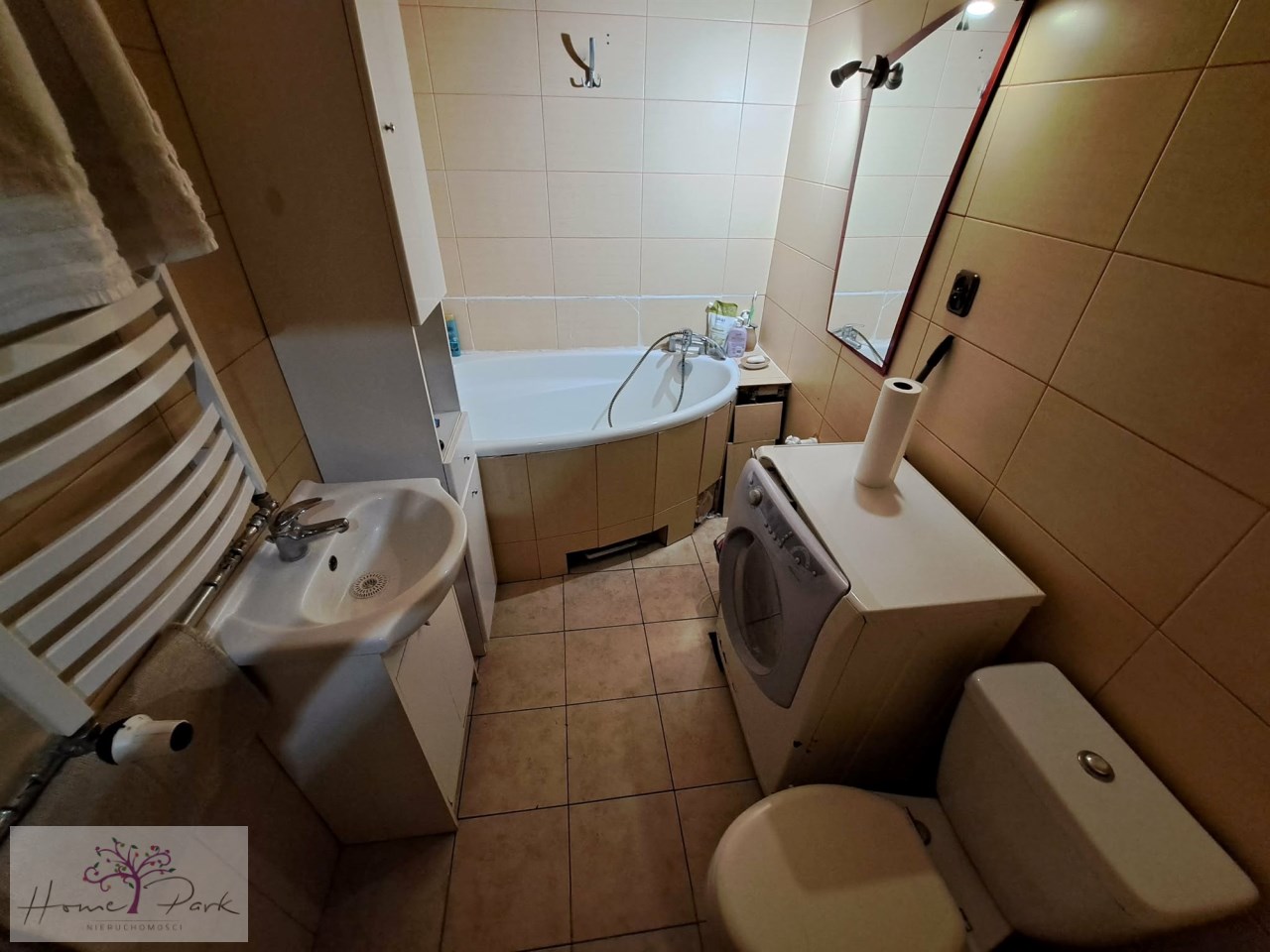 Pokoje: 29,01 i 19,79m2. W salonie na podłodze jest parkiet dębowy a w sypialni panele. W całym mieszkaniu na ścianach są gładzie gipsowe. Kuchnia jest umeblowana i wyposażona. Łazienka razem z WC, z glazurą i terakotą. W łazience: wanna, umywalka z szafką i WC-kompakt.
