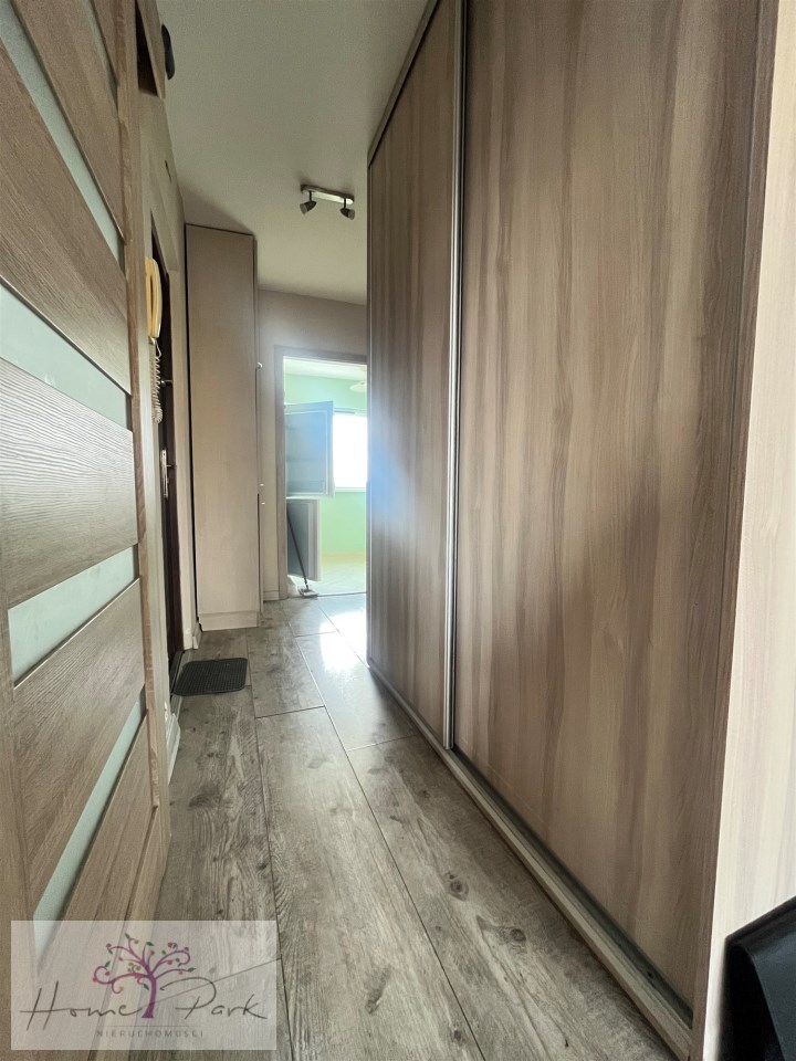 Mieszkanie sprzedawane jest z częściowym umeblowaniem, co pozwala na szybkie wprowadzenie się. Kuchnia wyposażona jest w sprzęty AGD, w tym zmywarkę, lodówkę i kuchenkę gazową oraz zabudowę. W przedpokoju znajdują się pojemne szafy, a w jednym z pokoi dodatkowa zabudowa.
