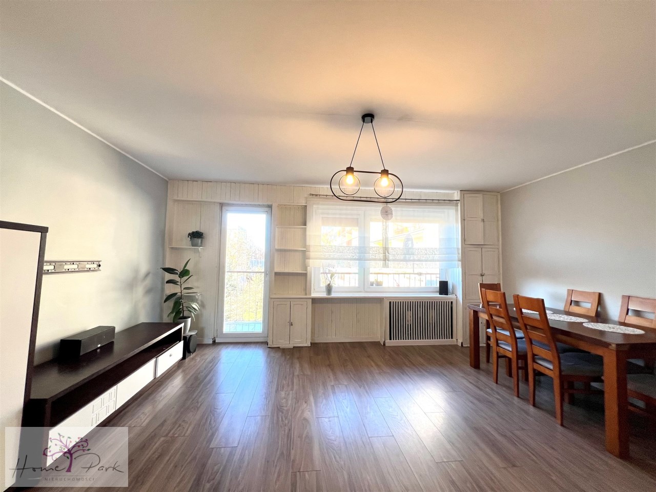 Salon o pow. ok. 25m2 z wyjściem na duży balkon. Wystawa okien - zachód.