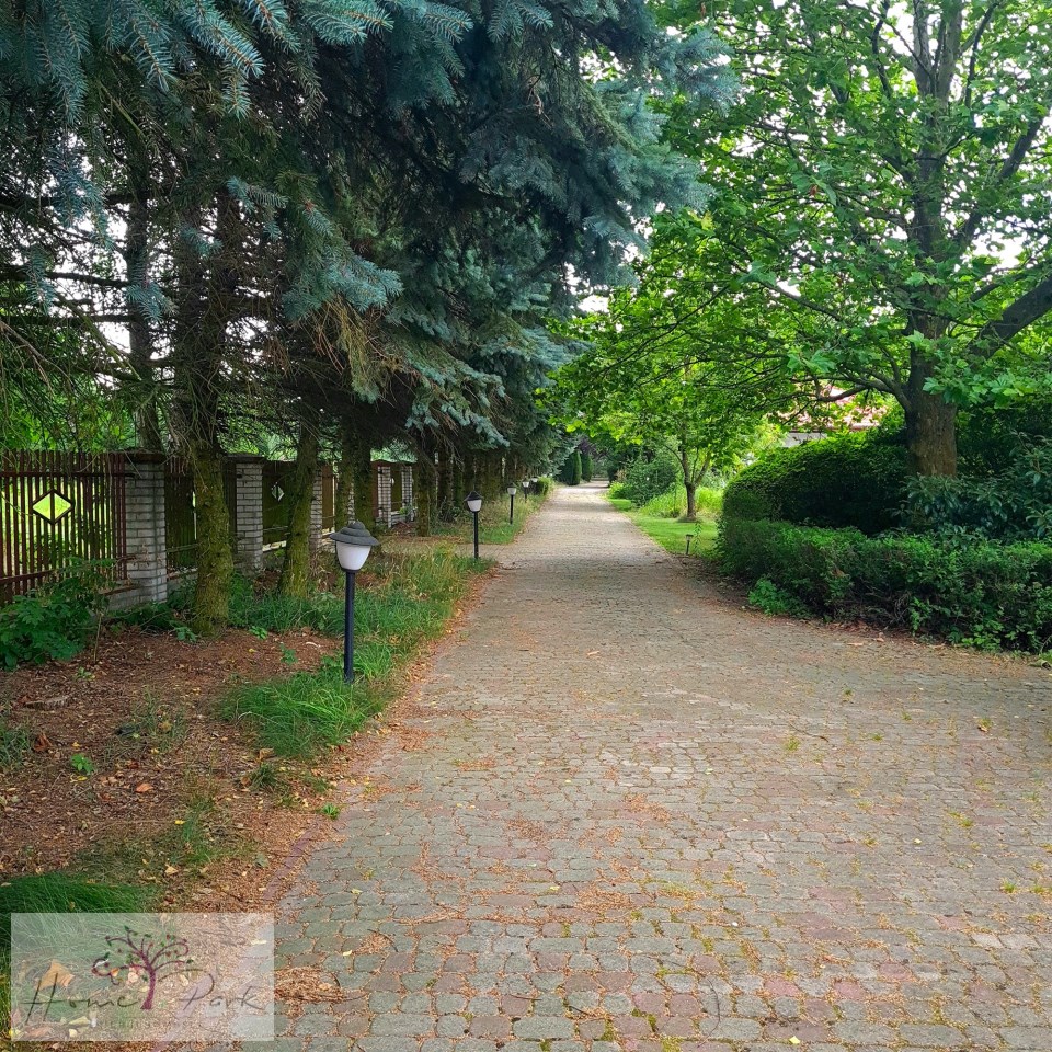 Droga dojazdowa do garaży - wyłożona kostką brukową .