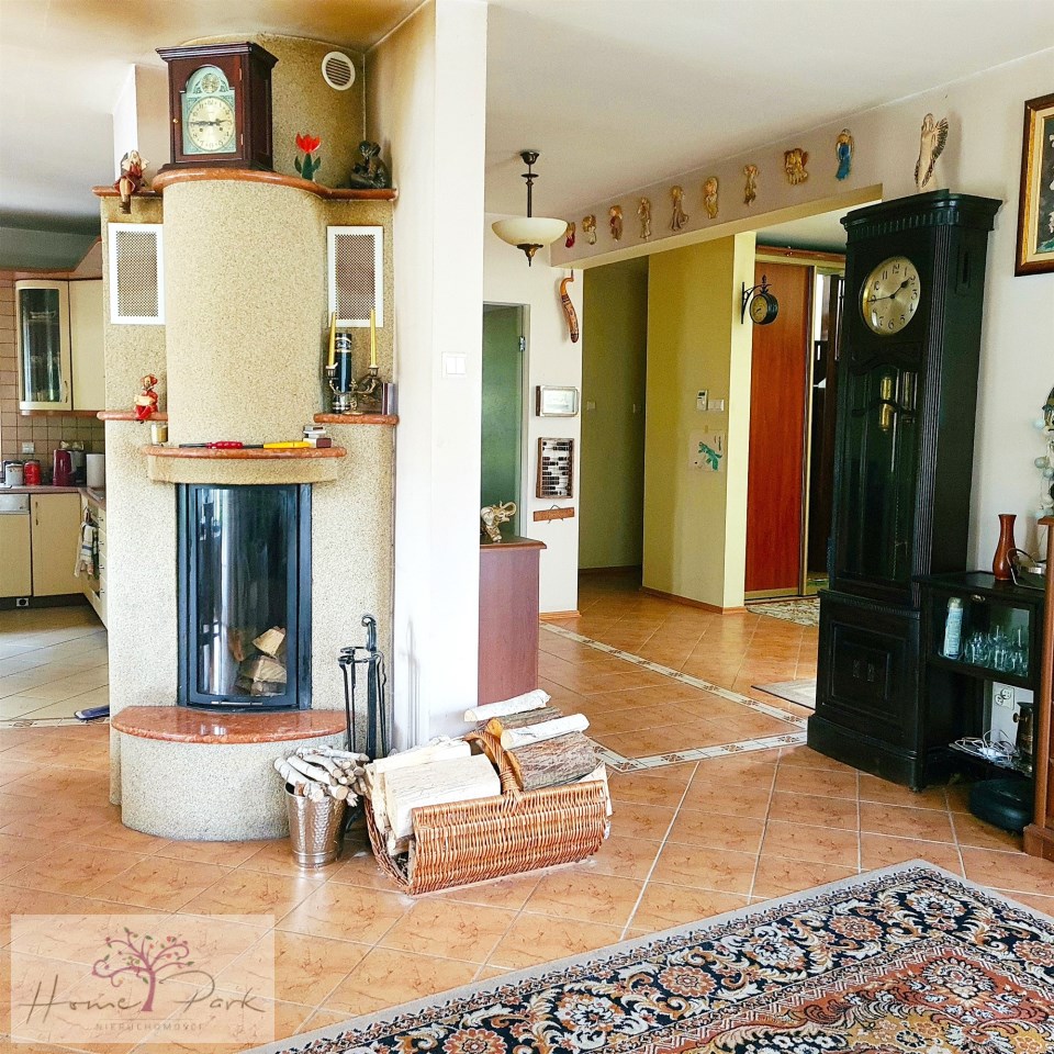 Salon - z otwartą kuchnią , jadalnią , kominkiem i częścią wypoczynkowo rekreacyjną .