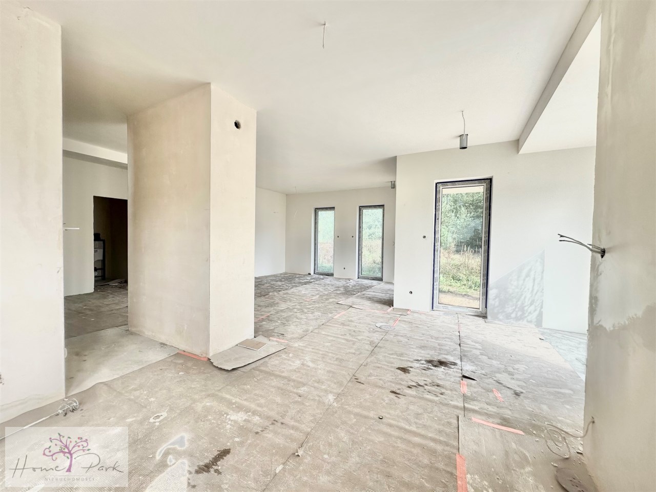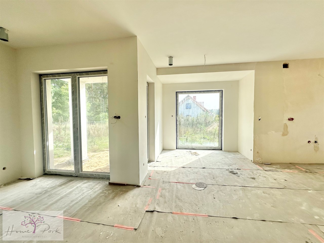 Oferta dotyczy sprzedaży nowego domu dla rodziny. Dom sześciopokojowy , piętrowy, na ładnej działce. Budowa już rozpoczęta , obecnie - prawie ukończony. Stan deweloperski będzie obejmował : na podłogach wylewki, rozprowadzone instalacje wod.-kan i c.o.- ogrzewanie podłogowe, instalacja rekuperacji, zewnetrzne rolety antywłamaniowe, kostka wokół domu i we wjeździe do garażu do garażu, brama garażowa. . Bardzo przestrzenny i funkcjonalny, elewacja w nowoczesnej stylistyce. Ogrzewanie : pompa ciepła. Dostępne media : światłowód, prąd, woda z własnego ujęcia. Kanalizacja - przydomowa oczyszczalnia ścieków. Piękna okolica - blisko las, wokół cisza i spokój. Działka o pow. 1200 m ².