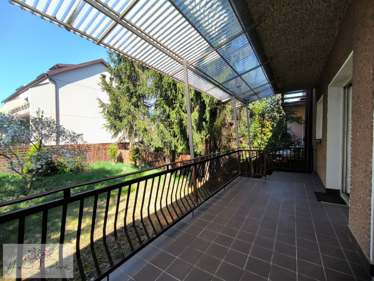 Dom usytuowany jest na działce o powierzchni 400 m². Teren jest ogrodzony i zagospodarowany, a wieloletnie drzewa zapewniają naturalny cień, przyjemny mikroklimat oraz wysoki poziom prywatności. Skrajne położenie segmentu dodatkowo wpływa na lepsze doświetlenie wnętrz i większą swobodę.