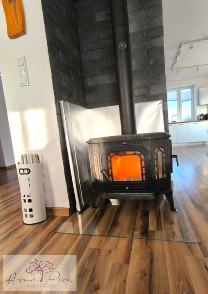Ogrzewanie zapewniają - piec na ekogroszek sterowany elektronicznie o mocy 10 KW , wspomagany przez elektryczny piec indukcyjny oraz kominek wyposażony w tzw. " kozę " o mocy 10 KW .