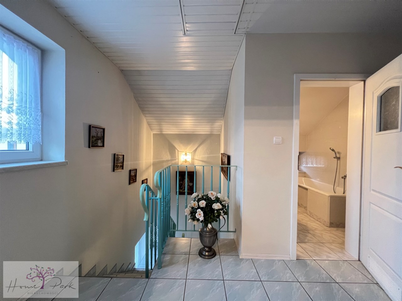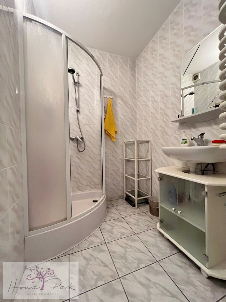 Na tym poziomie domu jest również duża łazienka z kabiną prysznicową oraz oddzielnym WC .