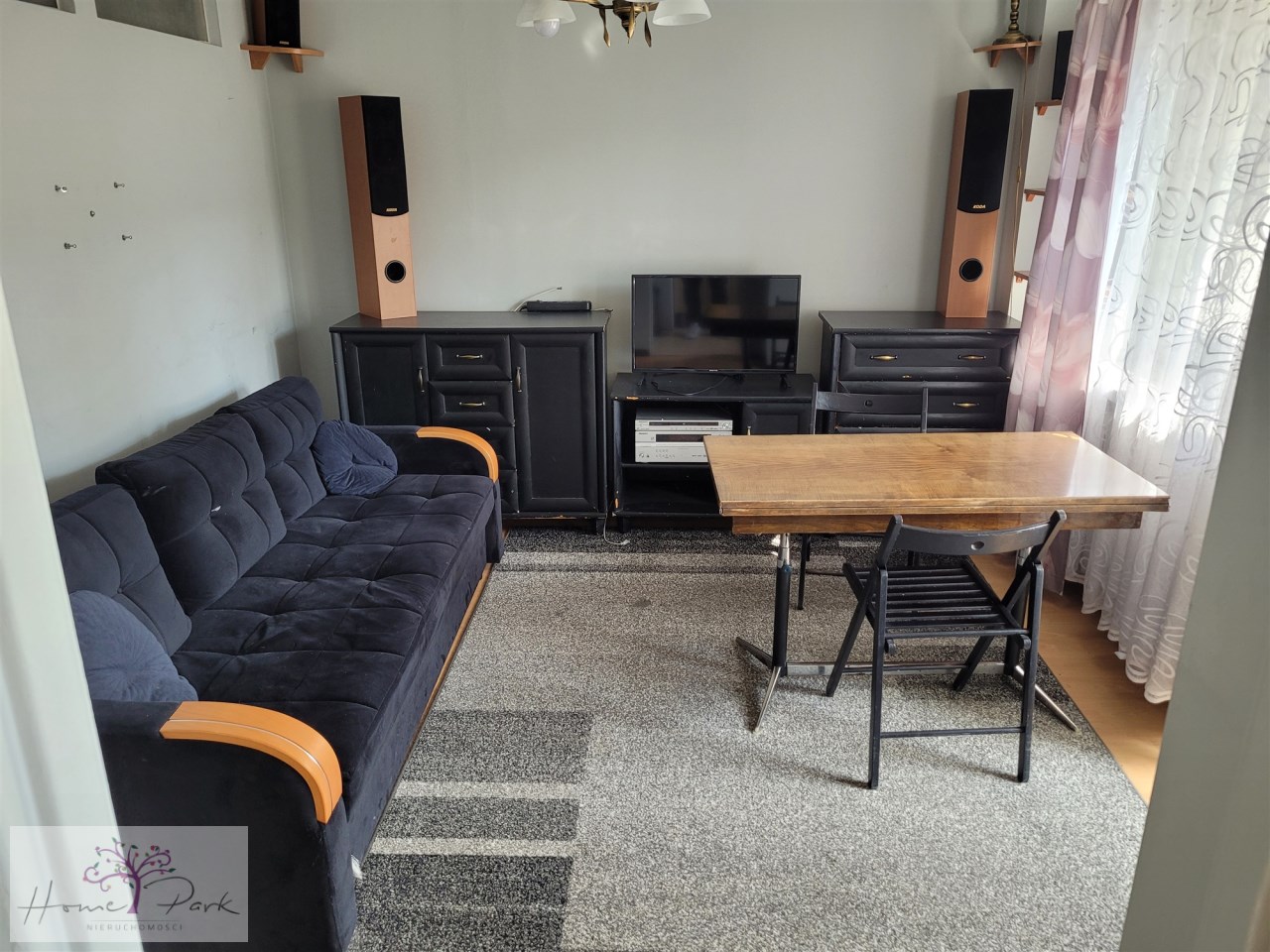 Składa się z 2 pokoi, kuchni, łazienki, przedpokoju oraz balkonu i komórki w piwnicy.
