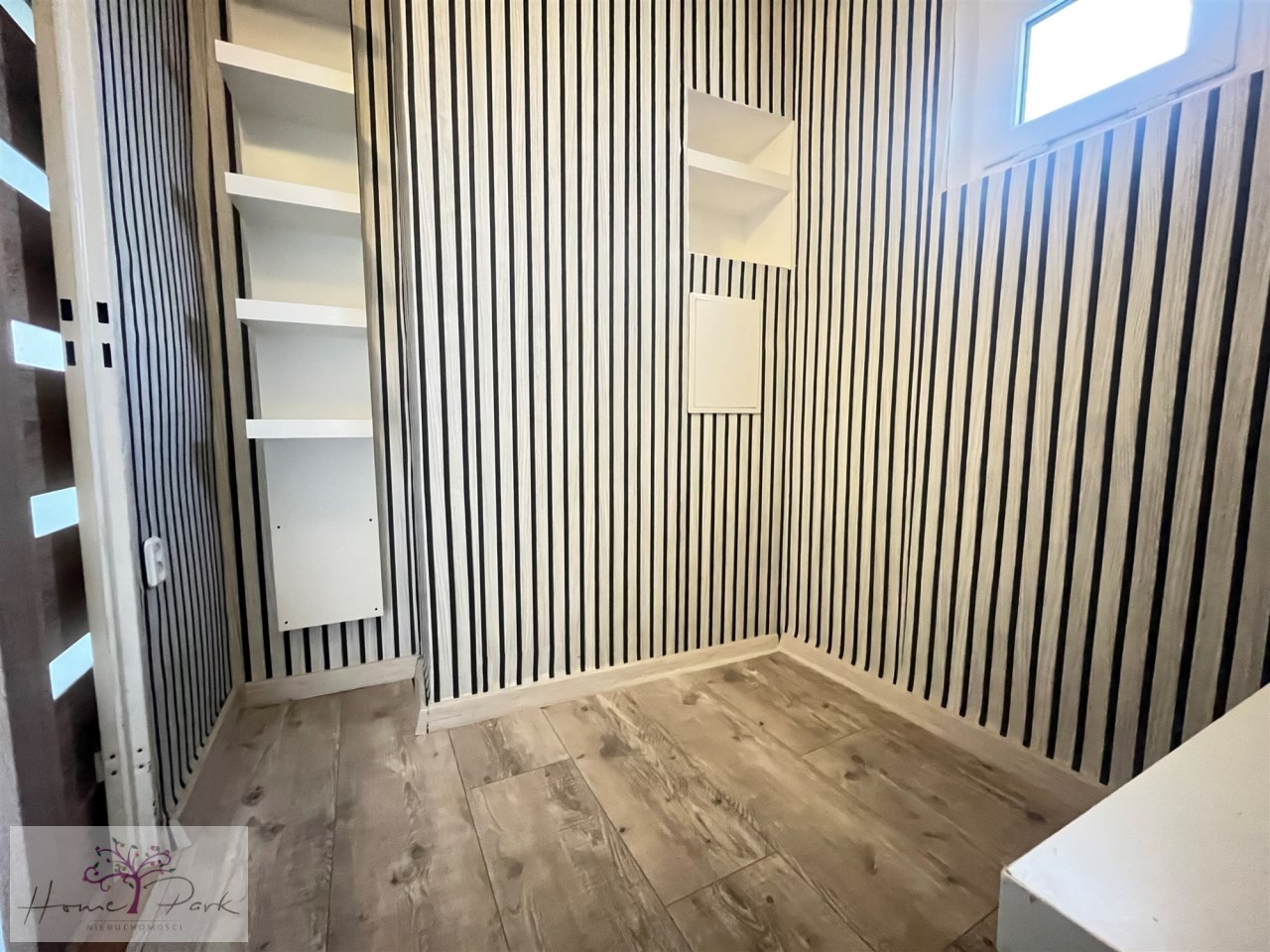 Mieszkanie sprzedawane jest z częściowym umeblowaniem, co pozwala na szybkie wprowadzenie się. Kuchnia wyposażona jest w sprzęty AGD, w tym zmywarkę, lodówkę i kuchenkę gazową oraz zabudowę. W przedpokoju znajdują się pojemne szafy, a w jednym z pokoi dodatkowa zabudowa.