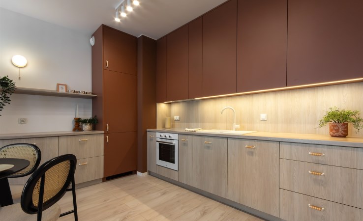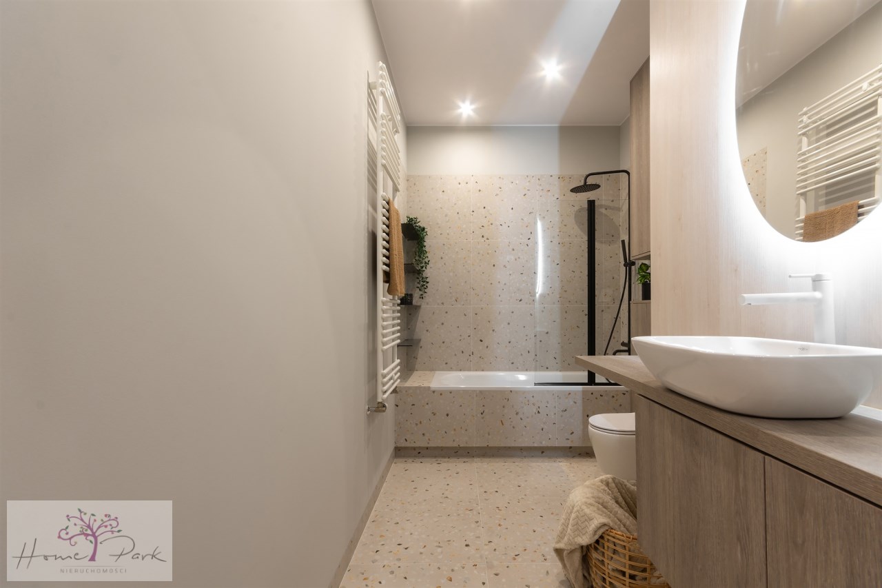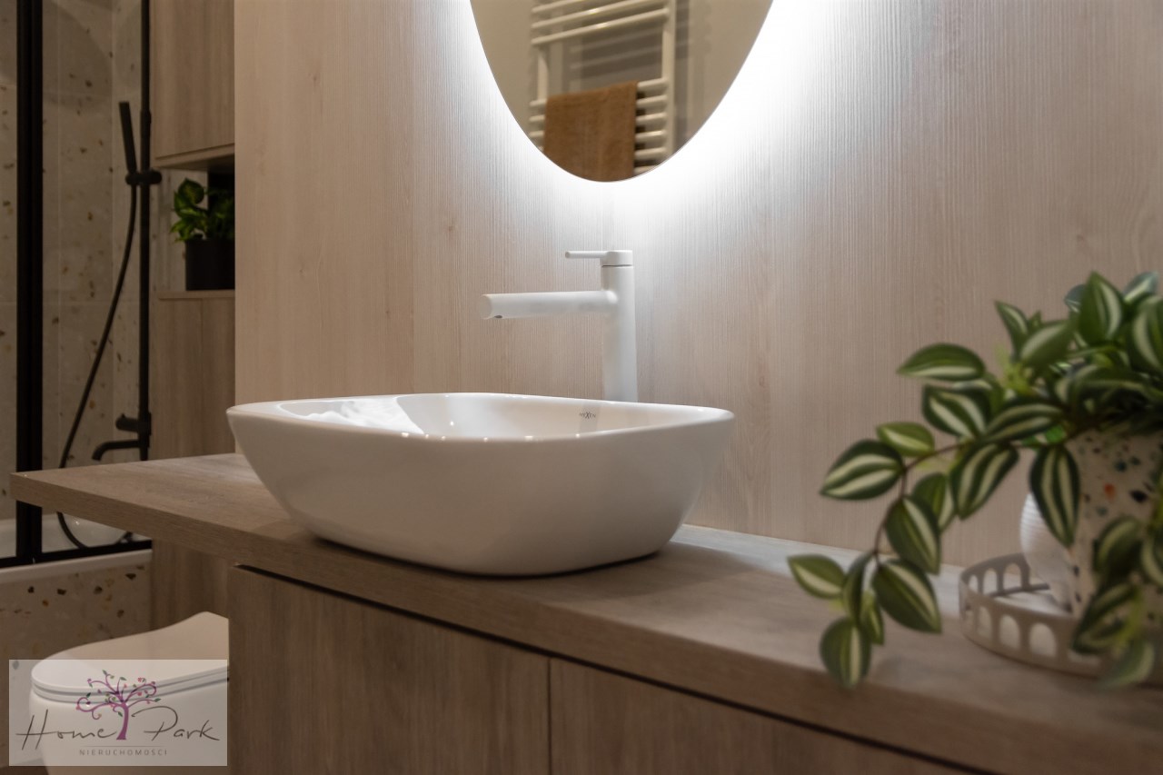 Naturalne materiały i jasne, ciepłe kolory, które tworzą unikalny klimat wnętrza. Materiały sprawdzonej jakości, prysznic RADAWAY, farby DEKORAL professional, Panele AC4 72h Aquastop, armatura EMPORIA. Kuchnia i zabudowy stolarskie wykonane na wymiar.