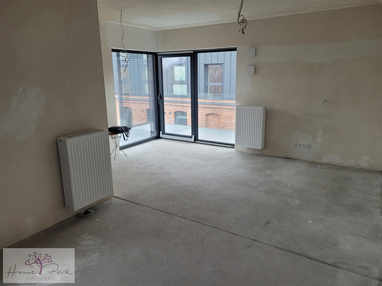 Stan deweloperski składa się z pokoju z anekesem kuchennym, 2 sypialni, łazienki, hallu/przedpokoju oraz wielkiego balkonu po całej długości apartamentu z wyjściami z 3 pokoi o powierzchni 24m2.